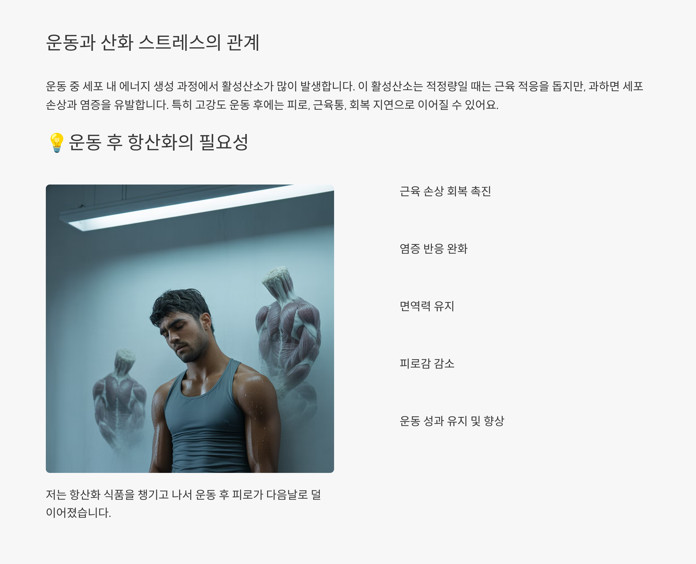 이 활성산소는 적정량일 때는 근육 적응을 돕지만, 과하면 세포 손상과 염증을 유발합니다.