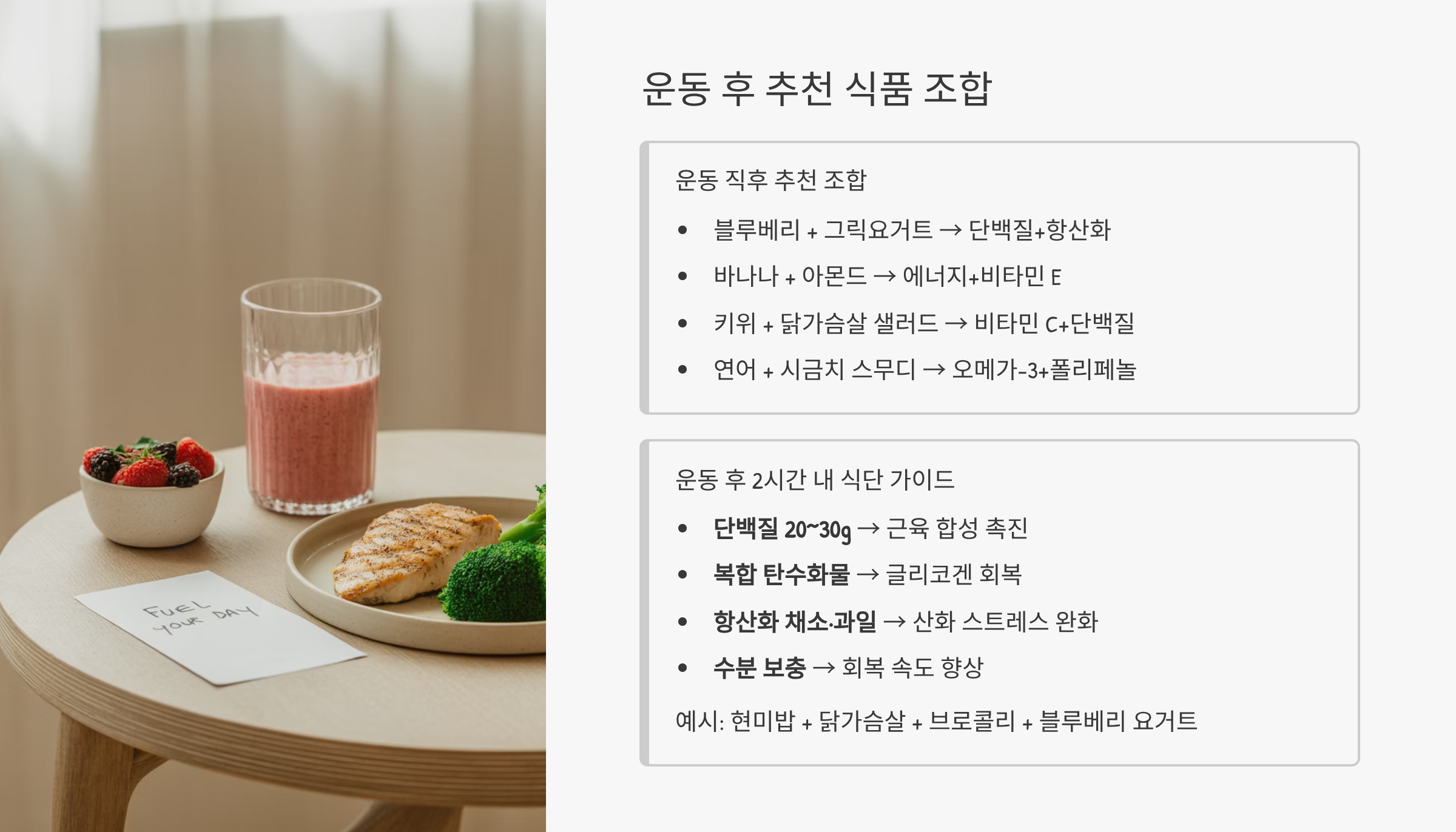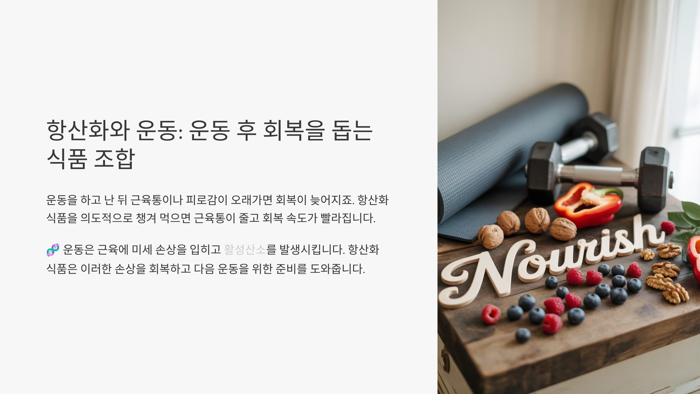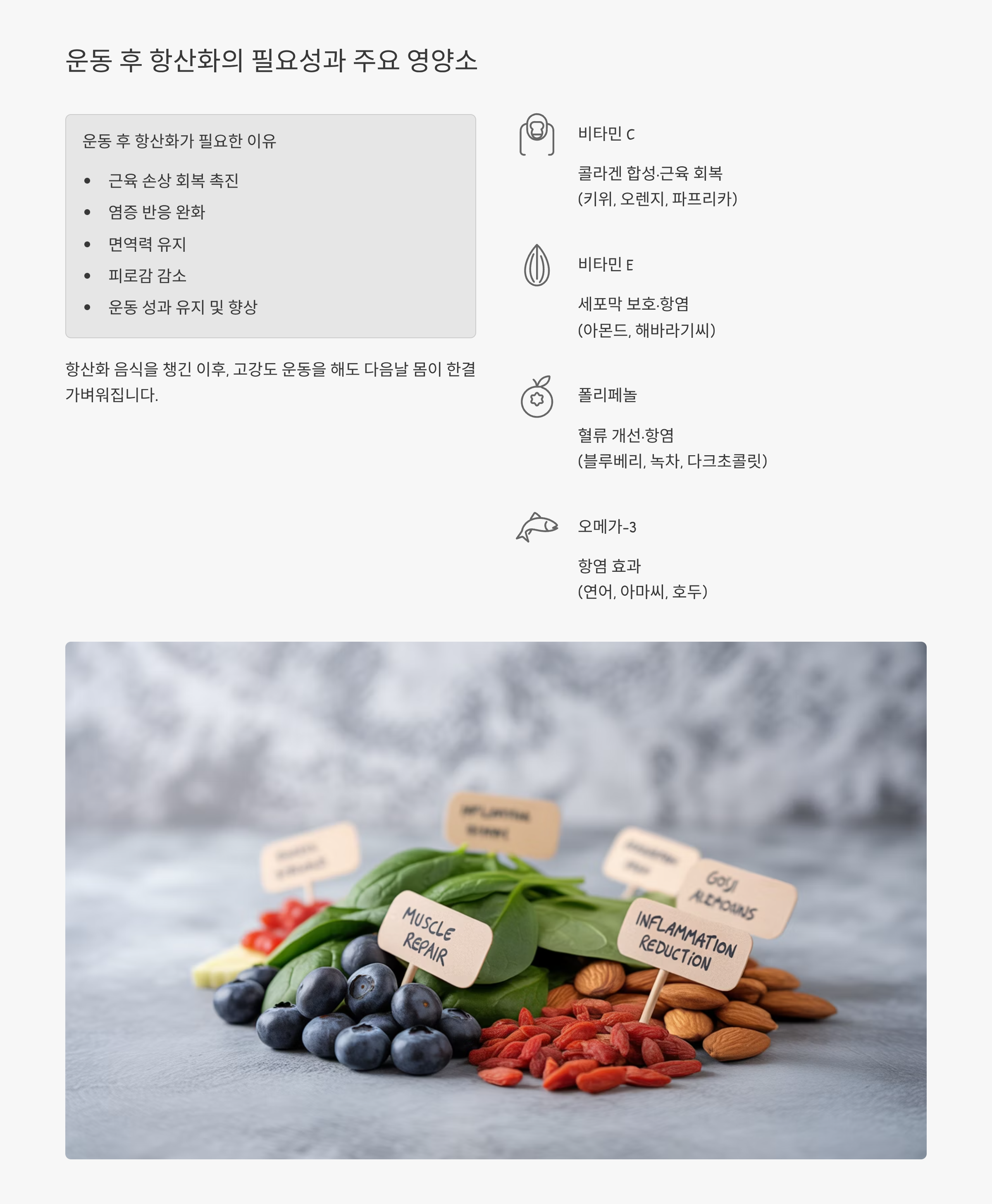 오늘은 운동 후 회복을 돕는 항산화 식품 조합을 알려드릴게요! 🥦💪