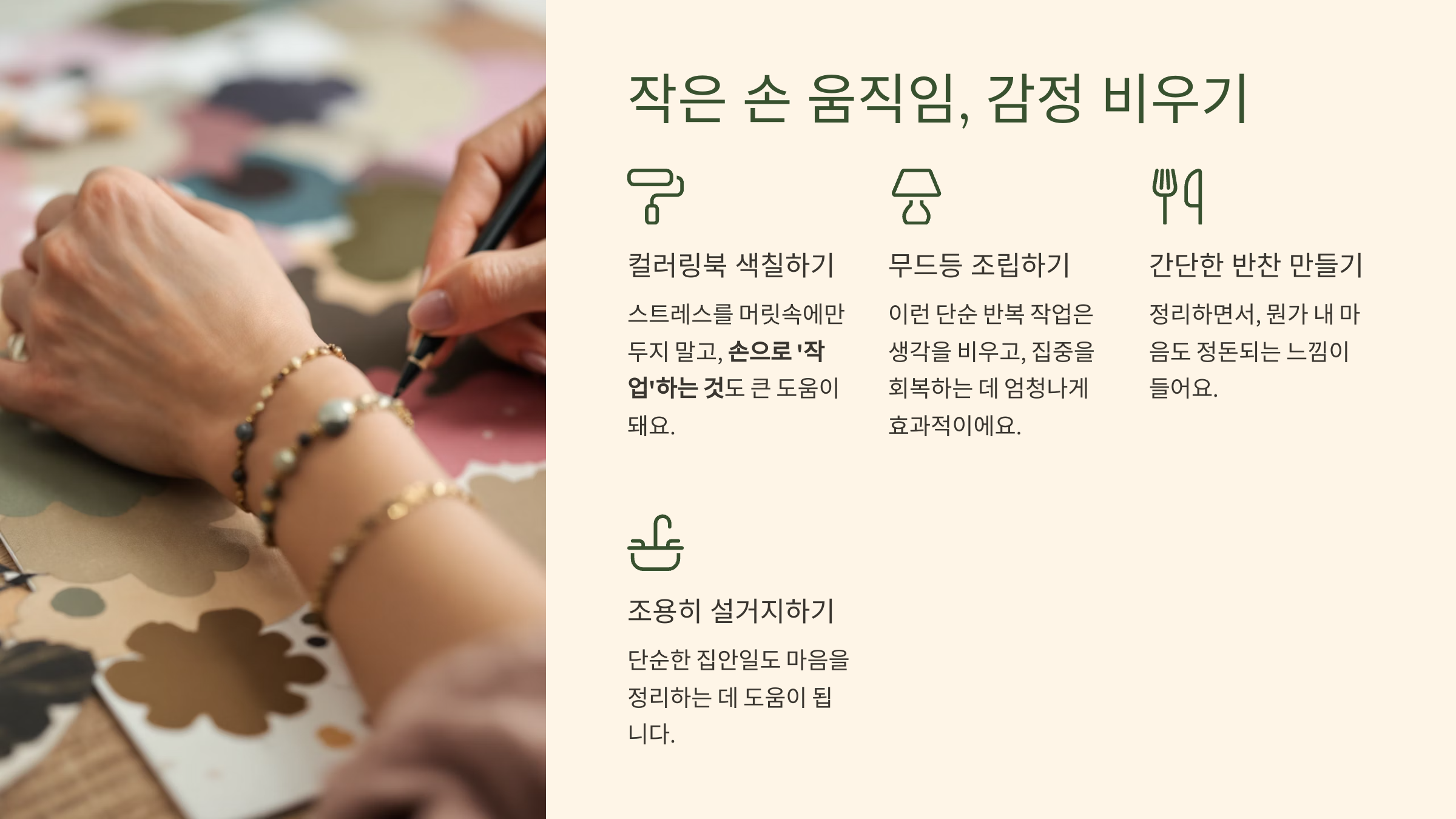 손으로 ‘작업’하는 것도 큰 도움이 돼요.