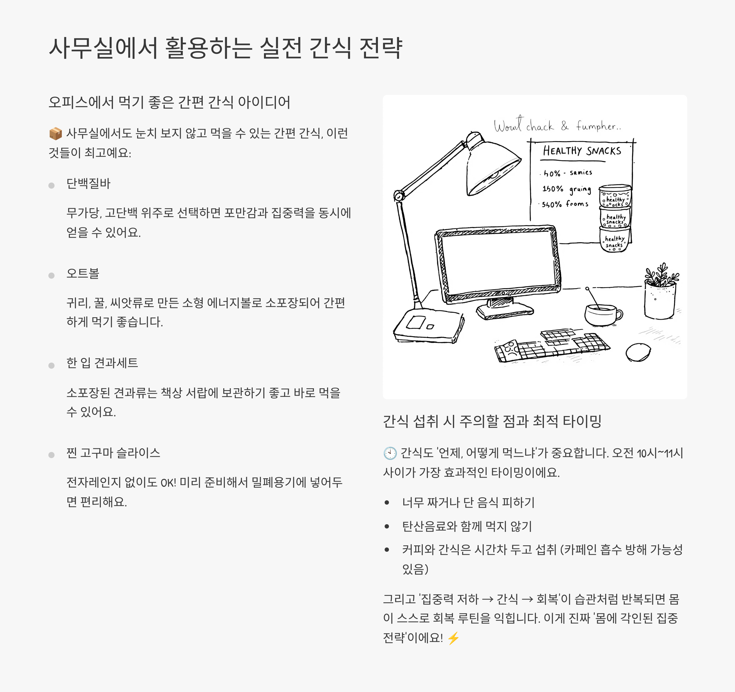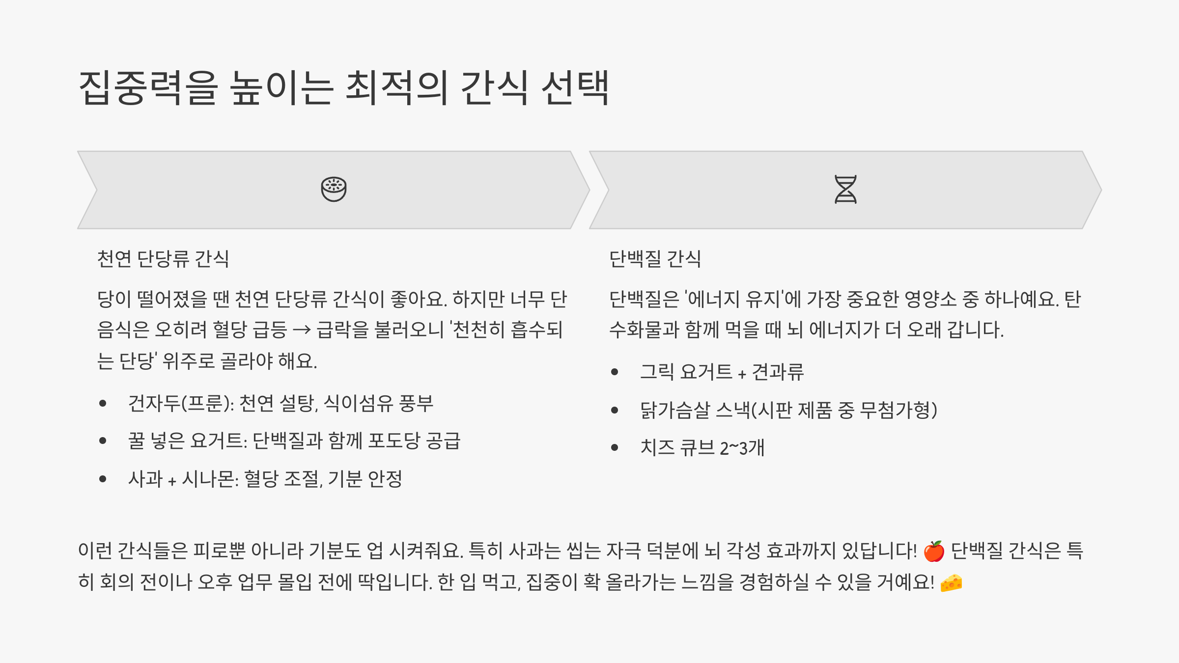 - 간식 하나로 집중력이 살아나는 메커니즘