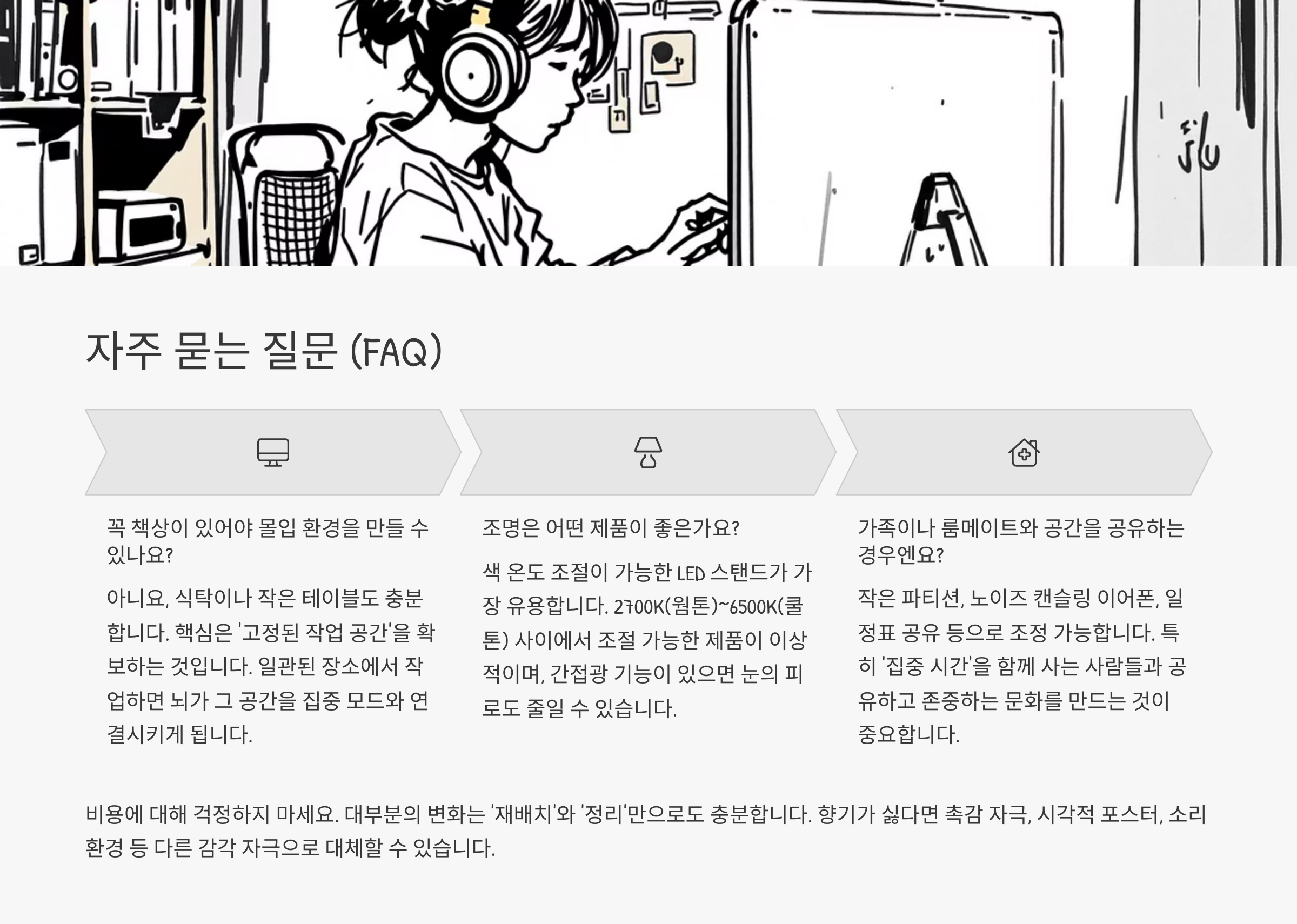 계속 바꾸고 테스트하면서 ‘나에게 최적화된 몰입 공간’을 찾아야 합니다.